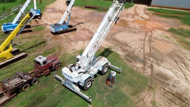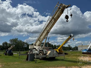 TEREX ROUGH TERRAIN CRANE, 1998 TEREX RT175 - 75 TON ROUGH TERRAIN CRANE EQUIPPED WITH 126' FOUR SECTION MAIN BOOM, 38'-60' JIB, BLOCK, BALL, ANTI-TWO BLOCK, 4X4, ALL WHEEL STEER, AUX WINCH, ROOSTER SHEAVE, CAB, HOUR METER READS: 7877, ***LOCATED IN LUCEDALE, MS******LOCATED IN LUCEDALE, MS***
