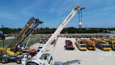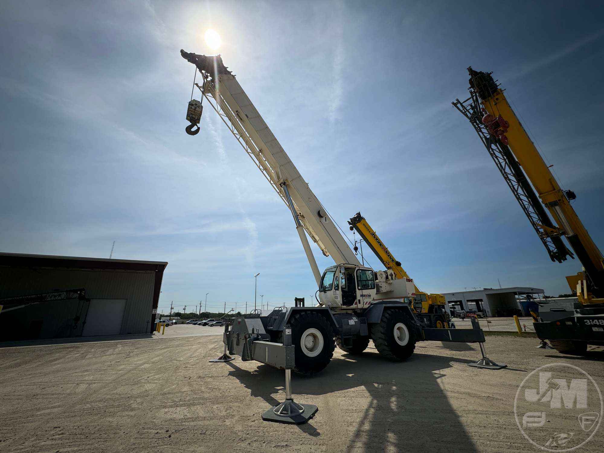 TEREX ROUGH TERRAIN CRANE, 2008 TEREX RT780 - 80 TON ROUGH TERRAIN CRANE EQUIPPED WITH 126' 4 SECTION MAIN BOOM, 33'-57' TELESCOPIC JIB, BLOCK, BALL, ANTI-TWO BLOCK, 4X4, ALL WHEEL STEER, ROOSTER SHEAVE, CAB, AC, HOUR METER READS: 3542, ***LOCATED IN DALLAS, TX***