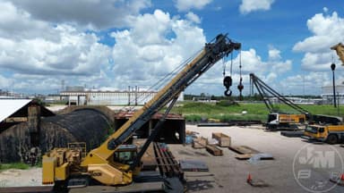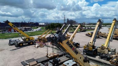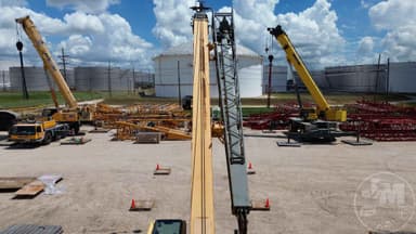 GROVE ROUGH TERRAIN CRANE, 2011 GROVE RT600E - 50 TON ROUGH TERRAIN CRANE EQUIPPED WITH 105' 4 SECTION MAIN BOOM, 29' - 51' TELE-SWINGAWAY JIB, BLOCK, BALL, ANTI-TWO BLOCK, 4X4, ALL WHEEL STEER, AUX WINCH, ROOSTER SHEAVE, CAB, AC, HOUR METER READS: 11657, ***LOCATED IN HOUSTON, TX***