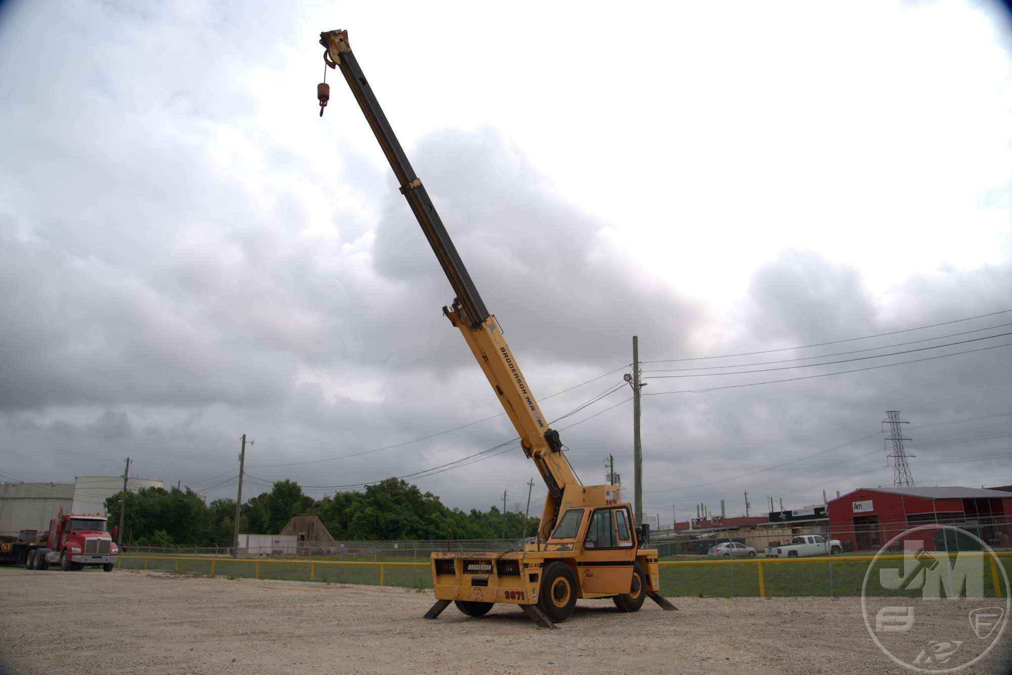 BRODERSON CARRY DECK CRANE, 2012 BRODERSON IC80-3J - 8.5 TON CARRY DECK CRANE EQUIPPED WITH AÂ 30' 3 SECTION BOOM MAIN BOOM AND 10' FIXED JIB, BALL, 4X4, ALL WHEEL STEER AND CAB ***LOCATED IN HOUSTON, TX***