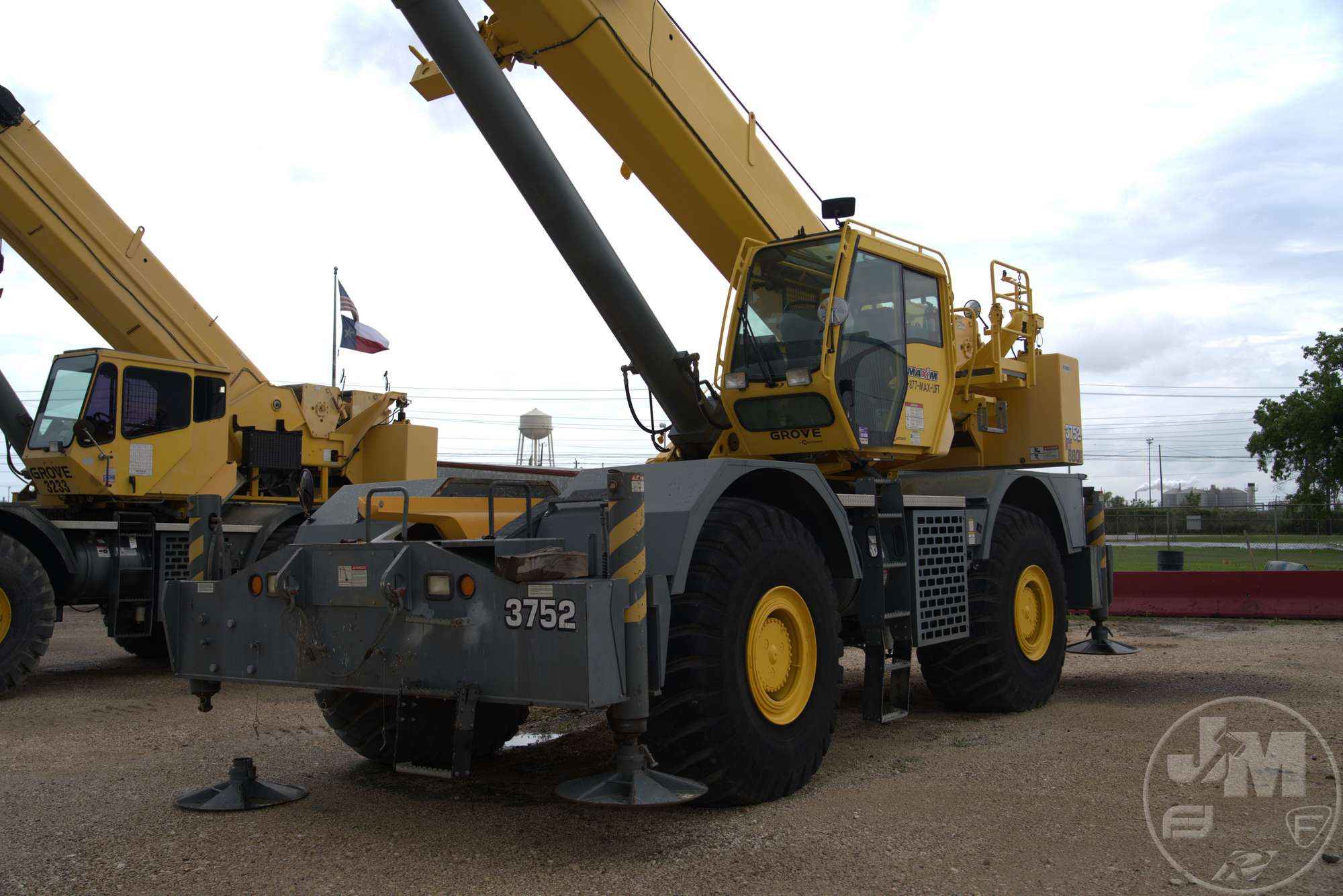 GROVE ROUGH TERRAIN CRANE, 2013 GROVE RT880E - 80 TON ROUGH TERRAIN CRANE EQUIPPED WITH 128" 4 SECTION MAIN BOOM, BLOCK, BALL, ANTI-TWO BLOCK, 4X4, ALL WHEEL STEER, AUX WINCH, ROOSTER SHEAVE, CAB, AC, HOUR METER READS: 7185, ***NOT A TITLED ITEM*** **BUYER IS RESPONSIBLE FOR LOAD OUT. ADDITIONAL SERVICE TO PREPARE EQUIPMENT FOR SHIPMENT OR LOADING TRUCKS WILL BE AN ADDITIONAL CHARGE** ***LOCATED IN HOUSTON, TX***