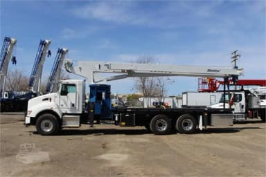 Standard features: 100’ Four-Section Telescopic Boom A Frame, 7-ton hook and ball, 3- load sheave quick reeve boom head, Externally Wired anti-two block w/lockout, Boom hoist cylinder, System pressure gauge, 372° Non Continuous rotation, Removable boom rest, Engine start/stop, Operators service/parts manuals, Boom length and angle indicators, Electronic Foot throttle, Signal Horn, Bubble Level, Beverage cup holders, Braden Winch, 2-speed Hoist w/grooved drum, 335’of 9/16” Rotation Resistant Wire Rope, Subframe for 21’ Bed, 70 gallon reservoir w/suction strainer and ball valve, Pedestal, Swept Back Turret, Rotation bearing and Swing system, Dual Operator Control Stations, Can Bus Load moment indicator w/Internal length Cable-audio/visual capacity alert w/shutoff, Hermetically sealed Printed Circuit board electrical system w/LED Circuit Status Indicators, Audible Outrigger/Stabilizer Motion Alarm, A-frame Link Type Front Outriggers (22’4” Spread Width), Out and Down Rear Stabilizers (13’7” Spread), 3-Section Hydraulic Pump-Counterclockwise Rotation is standard, Outrigger Monitoring System. Additional Options Included: • Radio ATB Out/Down outrigger • 1 Piece 26’ Jib • 21’ HH Steel bed x 96” • 3 section Vane Pump-Clockwise rotation (required with automatic transmission) • Hot Shift PTO (Required with an automatic transmission • Drive shaft for Pump Installation (Required with automatic transmission) • Heavy-Duty Hydraulic Reservoir • 15 Ton 1-Sheave Quick Reeve Block • Front Center Stabilizer • Mounting- Front Center Stabilizer • Control valve for operation of single stabilizer • Aluminum Tool Box (48” x 24” x 24”) Chassis Mount MOUNTED ON 2021 KENWORTH T440 Mounted on a 2021 Kenworth T440 tractor chassis with a PACCAR PX-9 370 HP diesel engine, automatic Allison 3000 RDS-P 6-speed Transmission, 5th Gen controls, PACCAR 20,000 lb. front axle, Dual Meritor MP40 14x4 40,000lb. rear axle, Full set of Alcoa polished wheels, Single Aluminum 100 gallon fuel tank, Heater and air conditioner with defrosters, full instrumentation, full power windows, interior color Gray/black, Kenworth radio DEA710AM/FM/WB/USB/ with Bluetooth, Air horn mounted under cab, dual heated mirrors, exterior stainless steel sunvisor, Unit is painted Dupont Imron Elite white.