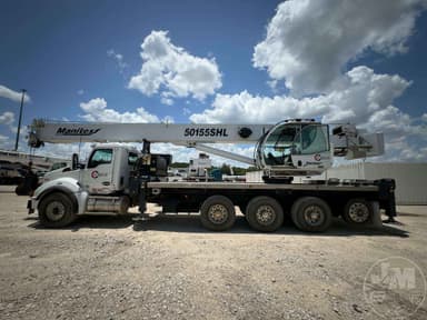 TRUCK CRANE, 2022, MANITEX, 50155SHL, CRANE SN: 307520, CAPACITY 50 TON, 155' 5 SECTION MAIN BOOM, 39'-49' TELESCOPIC JIB, 3 SHEAVE 35 TON BLOCK, BALL, HYDRAULIC TILT CAB, A/C, REMOTE CONTROLLED OUTRIGGERS & WINCH, CUMMINS X15, ENGINE BRAKE, AUTOMATIC TRANSMISSION, 445/65R22.5 TIRES, DROP AXLE, INTERLOCKING DRIVE AXLES, TOUCH SCREEN SATELLITE RADIO/GPS, PTO HOUR METER READS: 1260, HOUR METER READS: 2087, ODOMETER READS: 24527, ***LOCATED IN HOUSTON, TX******LOCATED IN HOUSTON, TX***