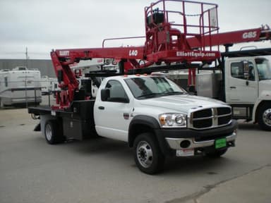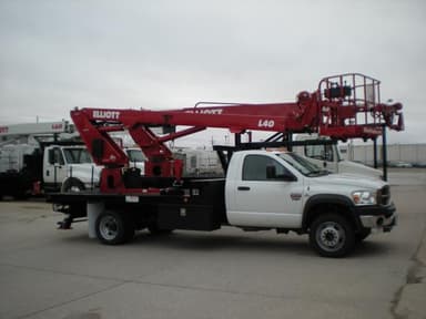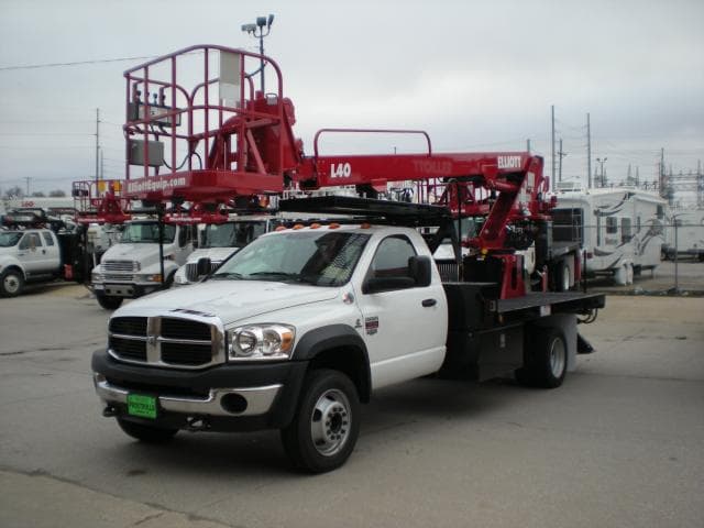 New IN Stock Elliott L40R 40ft Aerial lift Mounted on New Dodge 5500 Cummins Automatic, Jib Winch, Sign forks, Nice Boxes and Deck, Available Now, Rental or Sale