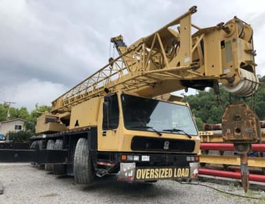 1998 GROVE GMK5130 150 US Ton (130 Metric Ton) All Terrain Crane With Following Working Spec: - 46ft to 151ft hydraulic boom with 1 base section and 3 telescopic sections - 33ft to 53ft double lattice manual offset swing-away jib for mounting on telescopic boom at 0°, 16°, and 30° - 3 - 26ft lattice boom inserts - Two winches plus auxiliary sheeve - Upper has Cummins 6-BTA 6-cylinder DSL engine hour reads approx 8738 hours - Lower has Cummins N14 6-Cylinder DSL engine aprox miles 95,000 - Allison transmission 5-speed forward 1-speed revers - 27t (59,500 lbs) Full Counterweight - Big tires 20.5 R 25 - Spare wheel - Drive 10 x 6. Performs crab functionality - Eddy-current brake - 5-sheaves 80t hook block - Ball hook - Error free working LMI - Radio with CD-player for carrier and crane cabin - Air condition for carrier - 12 V-socket for carrier cabin and reverse drive alarm - Two working floodlights at pivot section - Please call for price. Notes: Transmission rebuilt last year,
