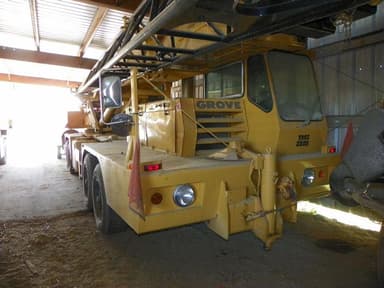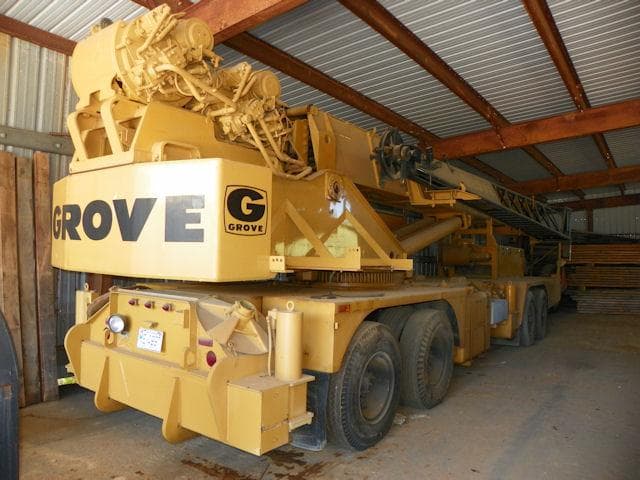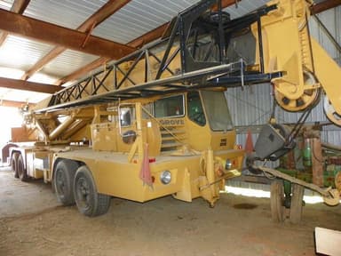 Crane equipped with: 104 ft. 4 section power-pinned boom, 32 ft. side-stow jib, main & auxiliary winches-Grove HD30,auxiliary lifting sheave, PAT DS350 LMI system, Front tires: 385/65R22.5-60%, Rear tires: 11.00 X 20-60%, block & ball.