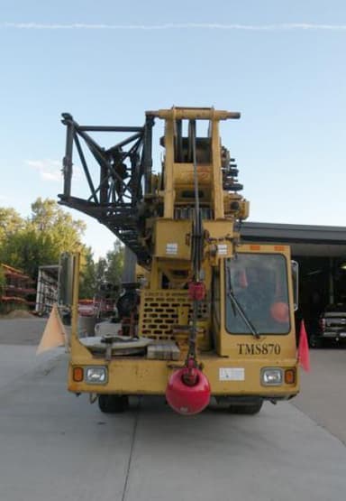 1996 GROVE TMS 870, 70 Ton, #1051, 35-138’ 5 Sec Full Power Boom w/Auxiliary Lifting Sheave, 31' to 56' S.A.Bifold Lattice Offsettable Jib, 2 Winches, LMI, ATB, DRI. 40 Ton Johnson 3 Sheave Hook Block & Ball. 8,500 Lb Hydraulic Removeable Counterweights With Front Stowage. Crane Is Upgradeable To 18,000Lbs Of Removable Counterweight For A Additional Cost. Grove 8'6" 8x4x4 Drive Carrier w/Cummins M11-400E, Fuller RR 10-Speed Trans, Jake Brake, 5th Front Outrigger, Diamond Plate Decking, Alcoa Rims, Tool Boxes. Boom Completely Rebuilt in 2010. LOCATED IN MICHIGAN!