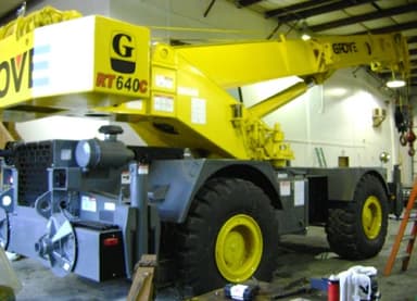 1999 GROVE RT 640C, 40 Ton, 33 - 105’ 4 Section Full Power Boom W/ Quick Reeving Boom Nose, 29’ To 51’ Swing Away Tele Jib Offsettable At 0° And 30°, 2 Winches, DRI W/Cable Followers, PAT DS 350 LMI W/A2B With Audio-Visual Warning And Control Lever Lockout., Armrest-Mounted Hydraulic Single-Axis Controllers, Hook Block, Hook Ball, Working Lights On Opts Cab. Grove 2 Axle 4 x 4 Carrier W/Cummins Diesel Engine, Full Powershift Transmission With 6 Forward And 3 Reverse Speeds.