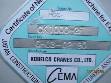 Kobelco Crawler Crane Ck1000 Iii 205698