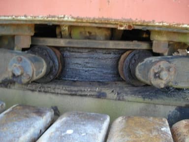 Heat treated track rollers on sintered iron bushings are sealed for maintenance-free operation,