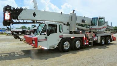 2008 Link Belt HTC8660II equipped with: 35.5 ft.-110 ft. 4 section full-power boom, 28.5 ft.-51 ft. side-stow jib, single winch, max counterweight-15,100 lbs., counterweight removal system, 40 ton quick reeve block & 8.5 ton ball, Link Belt LMI system, single axis armrest controls, Caterpillar C13 diesel engine, ZF automatic transmission, air condition-upper & lower cabs, air ride suspension, aluminum wheels, Front tires: 425/65R22.5: 2 @ 60%, 2 @ 80%, Rear tires: 11R22.5: 6 @ 40%, 2 @ 80%. New LMI display installed on 04/20/2016, boom hoist cylinder rebuilt on 04/27/2017, telescope cylinder rebuilt on 04/28/2016, new ECM installed on 04/21/2018. 91,658 miles and 9,662 hours. Very good condition with a current certification.