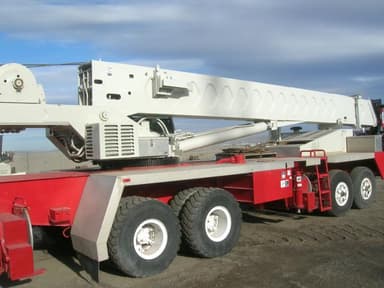 Crane recently had a small accident going through a guardrail when the operator fell asleep. No damage to the crane itself only to the hydraulic hose in front and minor carrier body damage. All damage has been repaired including having the crane compeltely repainted.