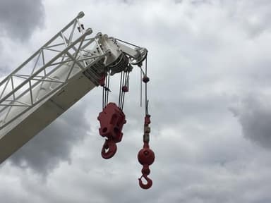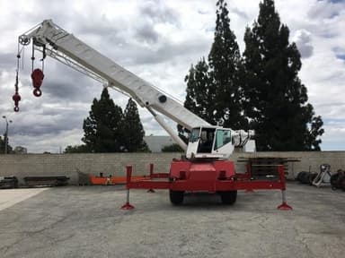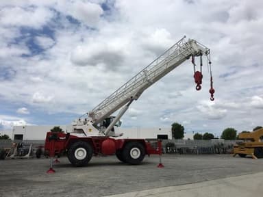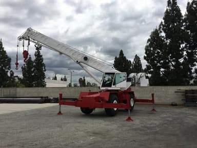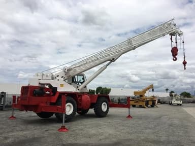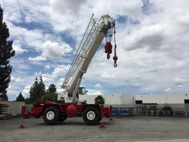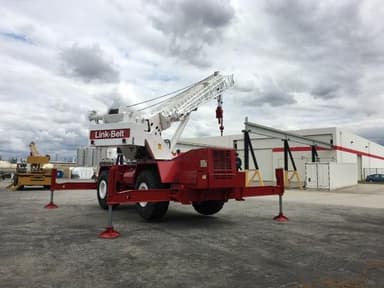 1989 Link-Belt HSP8030 Rough Terrain, CB&J#766, 32'-80' Three Section Full Power Boom with Auxiliary Lifting Sheave, 29' Swing Away Lattice Fly/Jib, Main and Auxiliary Winches with 3/4" Wire Rope, Drum Rotation Indicator, 2 Speed on Main, Anti-Two Block, LSI GS820 Load Moment Indicator with Boom Angle/Length Indicator, 50 Ton, 3 Sheave, Johnson Hook Block, 15 Ton Ball, Working light on the operator's cab, 9'5" wide 4 X 4 X 4 Link-Belt Carrier, Cummins 6BT5.9 (Tier 3) Engine with 940 hours of use, Automatic Transmission, Front and Rear Tires: 23.5 X 25 with 75% Remaining as of 6.2016, Out and Down Outriggers, Aluminum Outrigger Pads, Storage hatch in front of Carrier, Crane is in good condition for age. Paint and sheet metal are good. CAL OSHA Annual Certification Expires 9.2016, Quad Expires 9.2018 http://www.CranesBoomAndJib.com