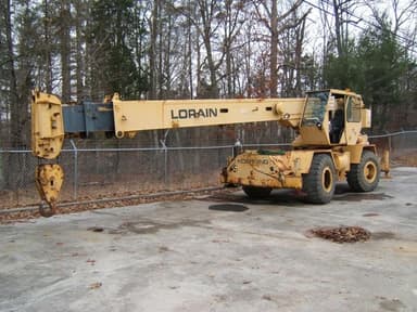 1990 Lorain LRT230, 23 Ton, Is Equipped With 72' Full Power Boom, 42' S.A. Jib, Two Winches, 4 Sheave Hook Block. Lorain/Koehring Chassis With Cummins 6BT 5.9 Diesel, 4,250 Hours Showing On Meter... Said to Be Original, 20.5 X 25 Tires.