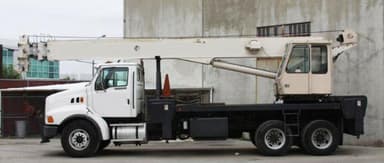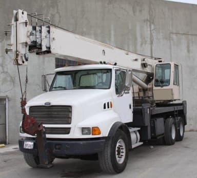 1989 NATIONAL 1295, 17.5 Ton, 29’-95' 4 Sec Full Power Boom, 29’-55’ Side Stow Tele Jib, Main Winch, 2 SPD, PAT DS-350G/A2B, Single Sheave Hook Block, Rear Mounted With Enclosed Cab On a 1997 Ford LT 9513, Tandem Axle Truck w/ CAT 3176B 365 HP , 10 Speed Fuller Transmission, Super Single Front tires with Alcoa Front Rims.