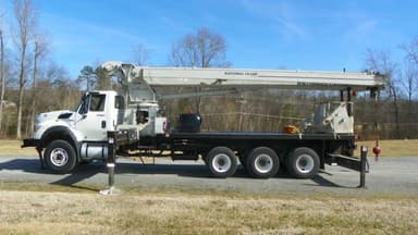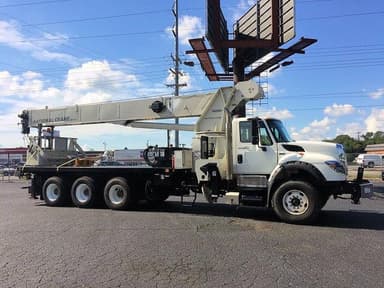2012 National 14127H hydraulic crane equipped with: 31 ft.-127 ft. 5 section full-power boom, 30 ft. side-stow jib, SFO front bumper stabilizer, cross frame out & down front outriggers-24 ft. 6 in. span, RSOD out & down rear outriggers-18 ft. 6 in. span, adjustable swing speed, internal anti-two block wiring, LMI system, hydraulic oil cooler, 375 degree non-continuous rotation, self lubrication "Easy Glide" wear pads, 2 man steel work basket, and NB4R radio remote; Mounted on a 2012 International 7600 tri-drive truck-73,000 lb. GVW, International Max Force diesel engine-410 HP, Allison 4500 6 speed automatic transmission, air ride suspension, and 22 ft. steel bed. 28,500 miles, 4,720 engine hours, & 2,327 PTO hours. Very good condition with a current certification.