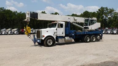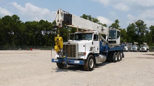 Used National 18103 Standard Features: 40 Ton capacity, rear mount, Enclosed cab, 3-section proportional boom – 103’, Out & Down Front Outriggers & Stabilizers, Front Bumper Stabilizer, Main & Auxiliary Planetary Hoist w/ Grooved Drums, Boom Rest, 3-Sheave Boom Tip, PAT DS160 Load Moment Indicator, Hard-Wired A2B w/ Audible Alarm, National 981821 Winch with 5/8†Rotation Resistant Rope, and Auxiliary National 981821 Winch with Rooster Sheave and 5/8†Rotation Resistant Rope. TRUCK: 2006 Peterbilt 378 Chassis with Tag Axle, Cummins ISX 475HP, with engine brake, Eaton Fuller 8LL Transmission, Double Frame, Peterbilt Air Suspension, AM/FM, GVWR: 70,740, 18,000 lb Front Axle, 40,000 lb Rear with Differential Locks, and 12,000 lb Tag Axle, Nonsteerable.