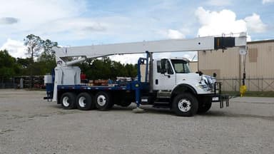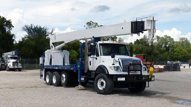 Hard-Wired A2B w/ Audible Alarm, Stand-Up Operator Station, National 981892 Winch with Standard 9/16†Rope, and Auxiliary Winch with Rooster Sheave. TRUCK: 2007 International 7600SBA Chassis with Pusher Axle, CAT C13 engine, 380 HP with Jake Brake, Heavy Duty Oilfield-Style Front Bumper with Storage