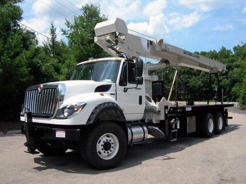 One (1) Used 2012 National NBT30H100, S/N: 297585, 30 Ton Hydraulic Truck Crane, Equipped With 29' to 100' Main Boom; 25’ to 44' Side Fold Boom Ext; LMI & A2B; Easy Reach Pilot Operated Single Axis Controllers; Hour Meter; Dual Engine Accelerators; Electronic Pendant Outrigger & Stabilizer Controls; Electronic Engine Throttles; 410 Degree Non-Continuous Rotation; Direct Mount Load Sense Piston Pump Hydraulics; 73 Gallon Hydraulic Reservoir; Two Speed Main Hoist; Winch Drum Rotation Indicator; 390’ (118.87m) 9/16†(14.28cm) Rotation Resistant Wire Rope; Round Downhaul Weight w/ Top Swivel; 15 Ton Single Sheave Hookblock; Front Out and Down Cross Frame Outriggers w/ Mid Span and Retracted Outrigger Configurations; Rear Out and Down Stabilizers; SFO; Torsion Resisting Subbase for 22’ Flatbed; Back Up Alarm; Outrigger Motion Alarm; Parallel Boom Rest Removable; 2011 International 7600; 410 hp International Diesel Engine; 60,000 LB. GVW; Manual Transmission; Approx Hours: 8, Miles: 911 8/12