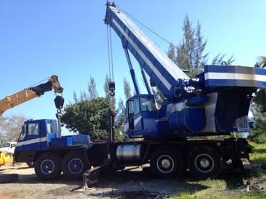 1985 P&H Alpha T1000 Hydraulic Truck, CB&J#631, 164' (5 sections total) - 4 Sections 132' Full Power and 1 Section 42' Power Pin Boom with Auxiliary Lifting Sheave, 60' - 4 x 15' Lattice Inserts Swing-Away Jib Off-Settable @ (0°, 25°), Detroit Diesel Engine UP, Main Winch, Drum Rotation Indicator, Electric boom Angle Indicator, Two Speed, Anti-Two Block, Load Indicator, 3/4†Wire Rope, 80 Ton 5 Sheave Johnson Hook Block, 7 Ton Johnson Hook Ball, Roof Hatch in operator's cab with windsheild wiper, Working flood light on operator's cab, 11' Wide 8 x 4 drive P&H 9150 Carrier, Cummins Diesel Engine with Jake Brake, 13 Speed Eaton Fuller Manual Transmission, Front and Rear Tires: 14.00 R24 XGC with 70% Remaining, Chrome Exhaust Stack, 5th Front Outrigger, Tool Box, Crane is Certified, LOCATED IN MEXICO! http://www.CranesBoomandJib.com LLC