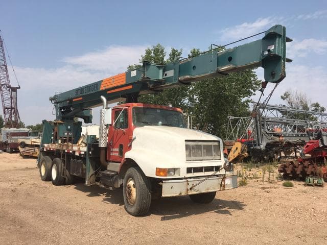 29'-92’ 4-section full power boom, 26'-44'side-stow two-stage jib, 144' Max tip height with jib, Anti-two block, PAT Load Moment Indicator, 5/8" wire rope, 10-ton Johnson single-sheave hook block, Rear mounted on a 1996 International 3-axle truck with Eaton Fuller 13-speed transmission, Air ride driver seat in cab, 21' wood bed, Out and down front outriggers, A-frame rear outriggers,
