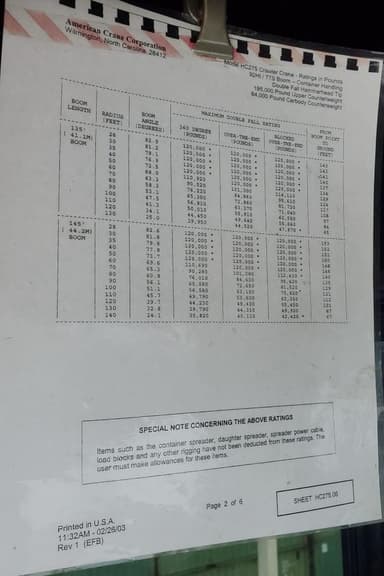 2003 TEREX-AMERICAN HC-275 TON CRAWLER CRANE (CONTAINER HANDLER)
