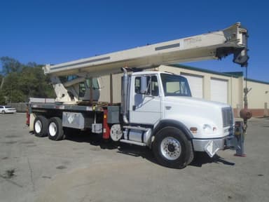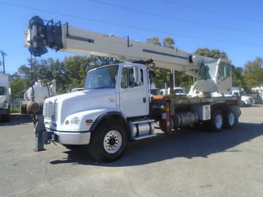 2003 Terex-Freightliner RS60100 Boom Truck, CB&J#905, 31'-100' four section full power mechanically synchronized keel boom, 30.5'-55' Two Stage Jib, Maximum tip height 165', Main Winch with 5/8†Wire Rope, 2 Speed, Anti-Two Block System, Load Moment Indicator with audio alarm and functional shut down, 3- Section Hydraulic Pump, 7 Ton Hook Ball, Rear Mounted with enclosed operator's cab on a 2003 Freightliner FL112 double frame tandem axle truck with differential lock switch and diamond plate bed, Mercedes MBE 410HP Turbo Diesel Engine with Jake Brake, Eaton Fuller RTO-14908LL, 8 Speed Manual Transmission, Power Steering, Air Conditioning, 425/65R Front Tires - 90% left with steel wheels, 11R 22.5 Rear Tires with steel wheels, 258" Wheelbase, Air Brakes, TufTrac Suspension, 4 Hydraulic Out and Down Outriggers, Fifth Front Hydraulic Outrigger, Vertical Exhaust, Rear Tow Hook, Current ANSI Annual Certification, LOCATED IN KANSAS!