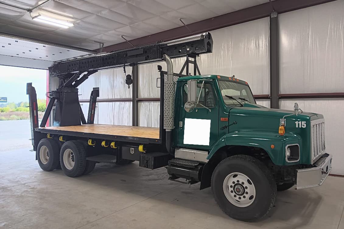USED USTC 110-35 TROLLY BOOM TRUCK FOR SALE, 5.5 TON, 35’ BOOM WITH 46’ TOTAL WORKING TIP HEIGHT, 2 HYDRAULIC A-FRAME OUTRIGGERS. MOUNTED ON A USED 2000 INTERNATIONAL 2674 TANDEM AXLE CHASSIS